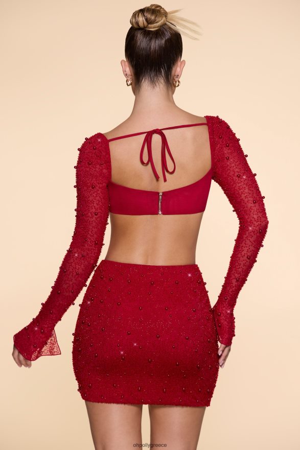 το κόκκινο Μίνι φούστα με σχιστή ψηλή μέση belle ile Oh Polly γυναίκες φούστες TH4BD4783