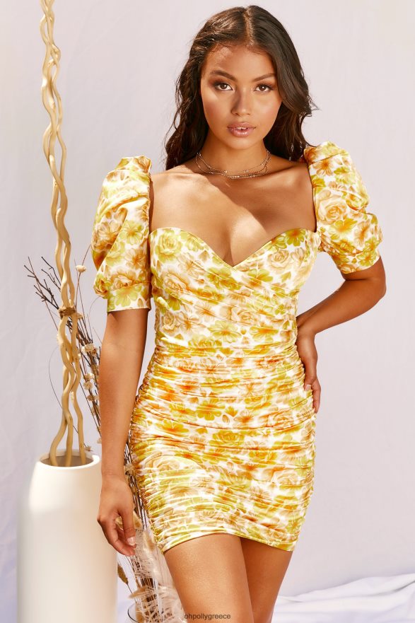 λεμόνι όπου η αγάπη μεγαλώνει φουσκωτό μανίκι wrap μπροστινό μίνι φόρεμα Oh Polly γυναίκες φορέματα TH4BD4521