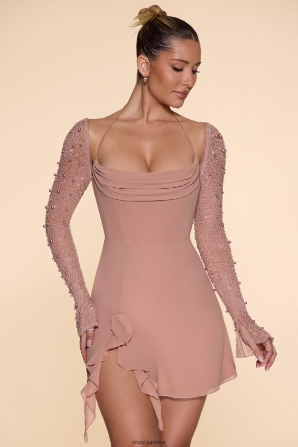 λεπτό και θηλυκό, το μίνι φόρεμα florence σχεδιάστηκε για να μαγνητίζει την προσοχή. Σχεδιασμένο με το ιδιόμορφο ύφασμά μας ζωρζέτ με διχτυωτό μανίκι ολόσωμο διακοσμημένο στο χέρι με μαργαριτάρια και χάντρες, το florence είναι ένα ρομαντικό στυλ ιδανικό για κομψές βραδιές ραντεβού. Η κολακευτική, πλισέ λαιμόκοψη του μπούστου τονίζεται με κομψές τιράντες στο λαιμό, ενώ η μίνι φούστα σε γραμμή α με καμπύλες έχει ρομαντικές λεπτομέρειες με βολάν στον μηρό. Όσο για τις λεπτές λεπτομέρειες, το μίνι φόρεμα florence συναγωνίζεται μια σαγηνευτική ανοιχτή πλάτη με σταυρωτά λουράκια που δημιουργούν ένα εφέ σε κλουβί.