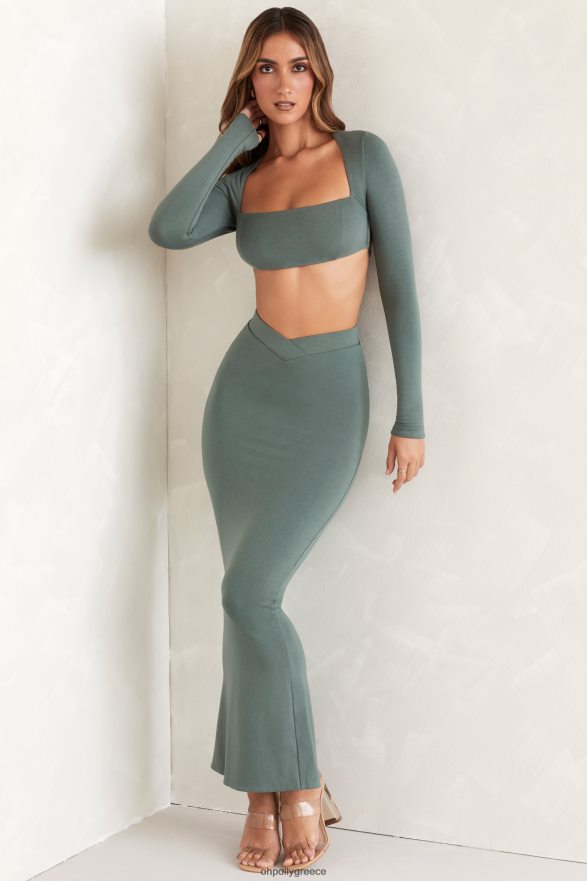 πράσινος avril κομμένο πίσω μακρυμάνικο crop top Oh Polly γυναίκες συλλογή TH4BD4659